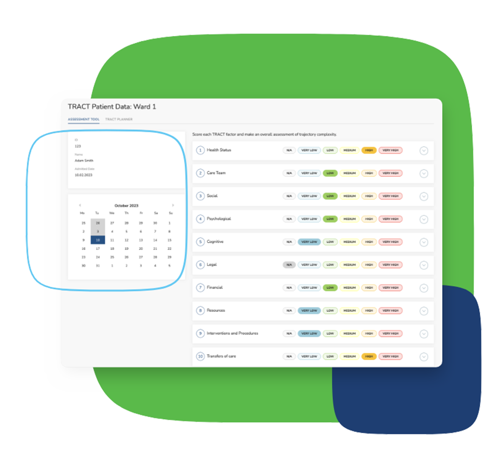 TRACT can identify where the organisational elements of patient care are complex, even if the person is not highly dependent or has acute care needs. For example, patients newly admitted for elective surgery may require high levels of organisational work, but have low acute or dependency needs - or patients who are fit to leave hospital may have low acuity and dependency needs, but require high volume of nursing work to organise discharge.