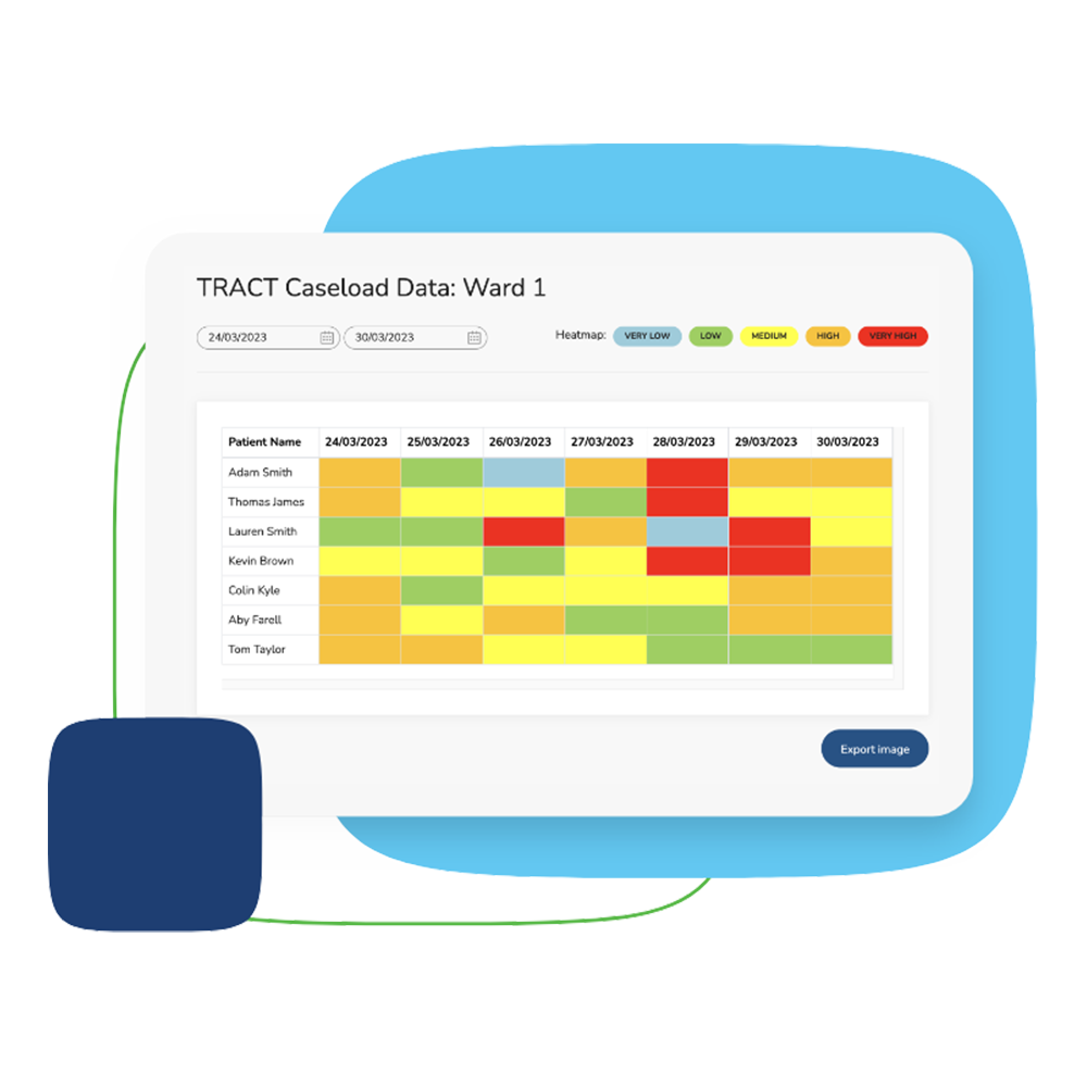 TRACT heat-maps can be downloaded as an image file, ready for online sharing, electronic or printed display, or use in key documents. Information recorded within the TRACT planner can be exported for annotation or use alongside other nursing tools or frameworks.